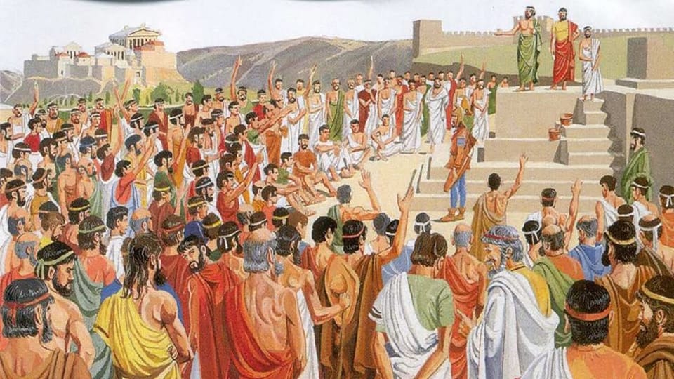 Яъне аз як тараф, макотиби фалсафии мухталиф, ки ҳар як назарияи хоссе дар бораи ҷаҳон изҳор ва ақоиди дигаронро ибтол менамуд падид омад ва аз тарафи дигар, дар асари як ҳодисаи таърихӣ, ки барои мардуми он сарзамин пеш омада буд муноқишот ва ҷанҷолҳои молии зиёде воқеъ мешуд, ки корро ба маҳкама мекашонд ва гурӯҳе аз донишмандон ба унвони вакили мудофеъ дар маҳкамаҳои умумӣ бо ҳузури ҷамъе зиёд аз тамошочиён ба дифоъ аз ҳуқуқи муваккилони худ мепардохтанд ва хитобаҳои муассир эрод менамуданд.