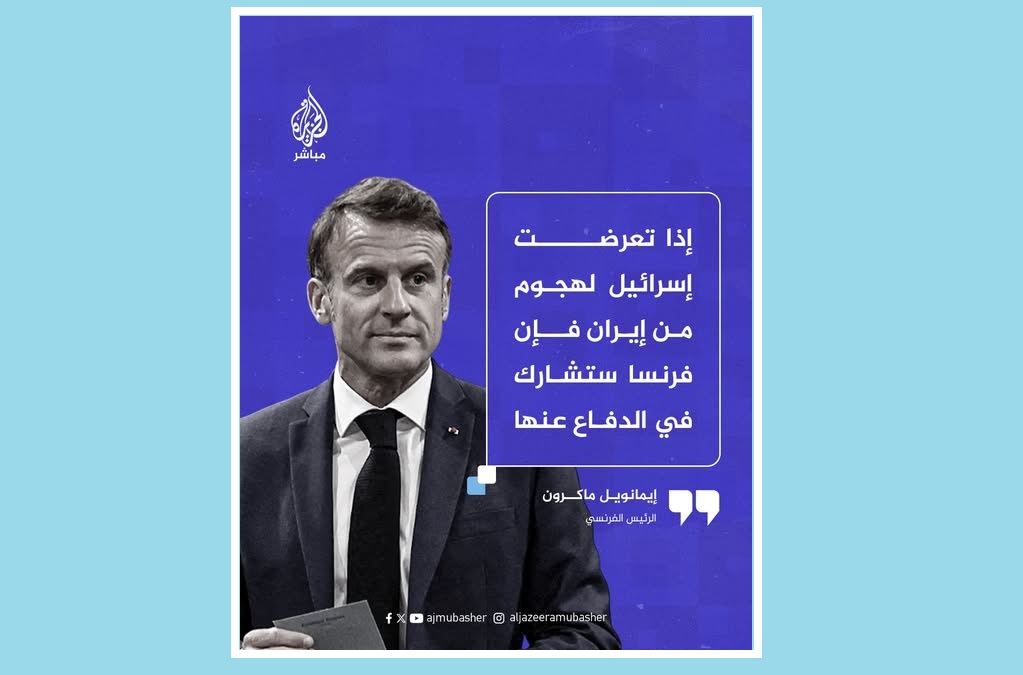 Фаронса эълон кард, агар Исроил аз сӯйи Эрон мавриди ҳамла қарор гирад, Фаронса барои дифоъ аз Исроил вориди ҷанг хоҳад шуд. (Алҷазира)