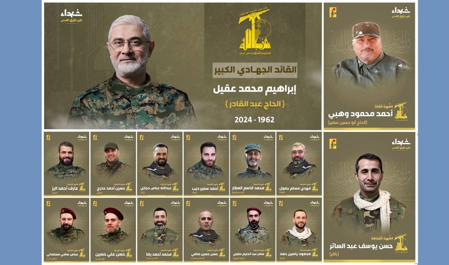 Ҳизбуллоҳ аз шаҳодати 15 тан аз фармондеҳони низомии худ, аз ҷумла Иброҳим Ақил хабар дод