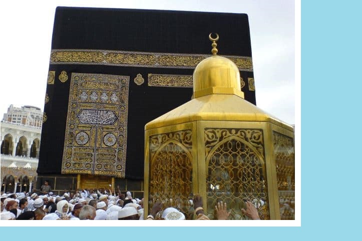 Инҷо куҷост? Мақоми Иброҳим, қитъаи санге бо ду радди пой, радди пойи Иброҳим, Иброҳим бар рӯйи ин санг истода ва Ҳаҷаруласвад — санги бинои Каъба – ро ниҳодааст.