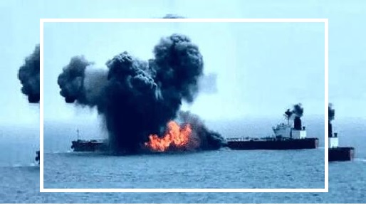 Оташ гирифтани нафткаши Амрико бо парчами ҷазоири Моршол дар тангаи Ҳурмуз