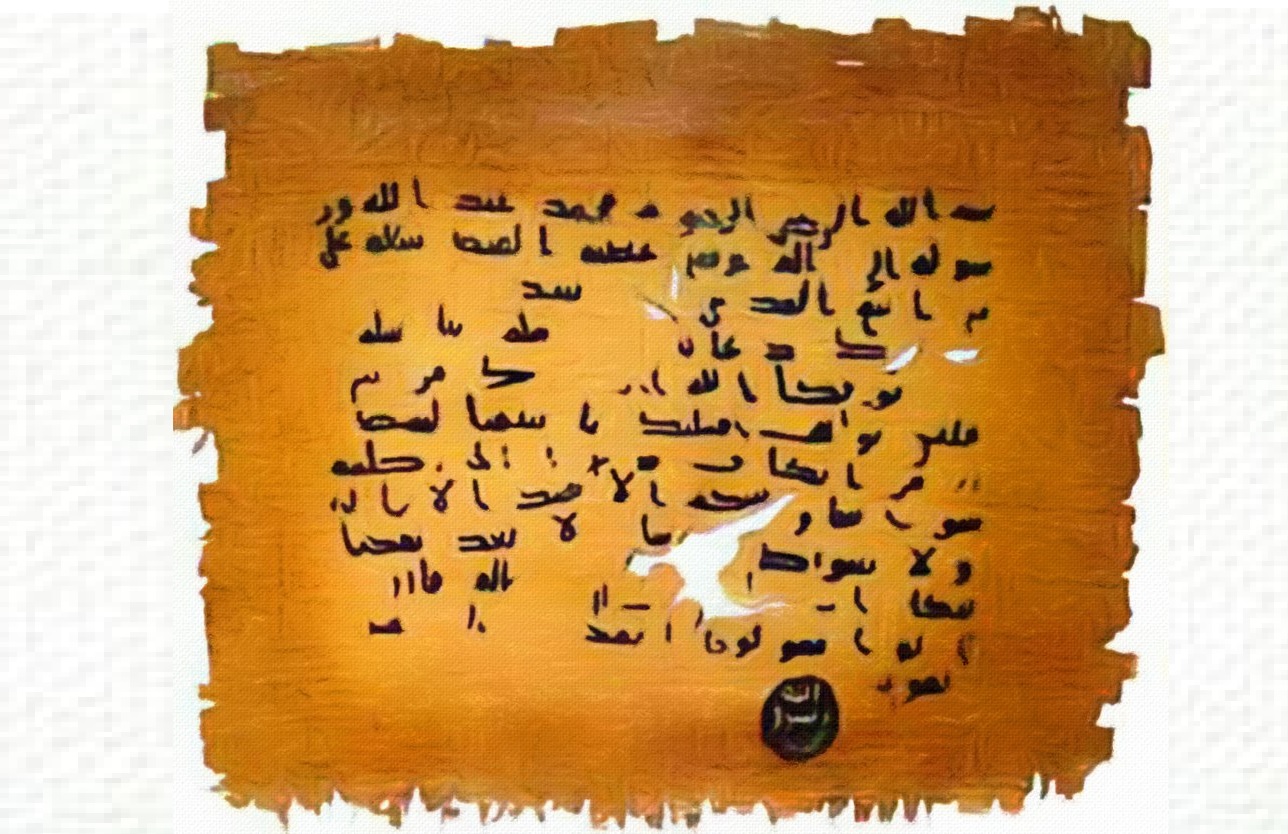 ولنجران وحاشيتها جوار الله وذمة محمد النبى رسول الله على انفسهم وملتهم وارضهم واموالهم وبيعهم ورهبانيتهم واساقفتهم وغائبهم وشاهدهم وكلما تحت ايديهم من قليل او كثير…