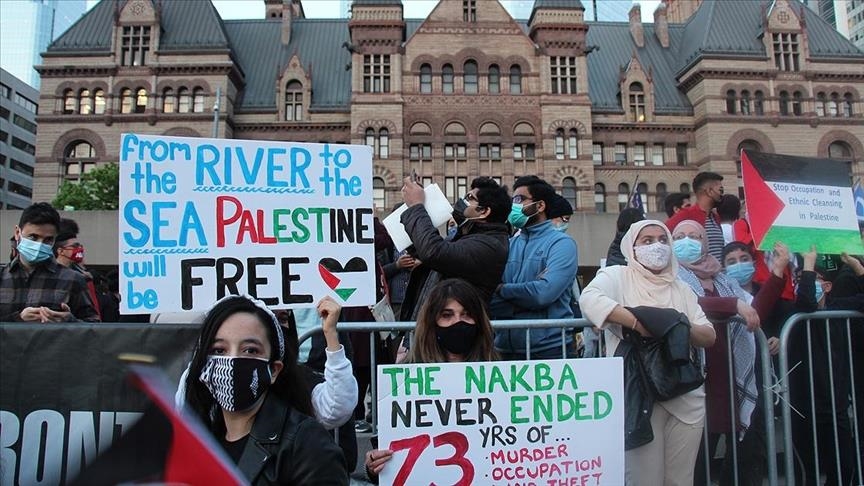 Ҳомиёни Фаластин барои ба намоиш гузоштани ҳамбастагии худ бо фаластиниён дар Ғазза ба хиёбонҳои Торентои Конодо омаданд.