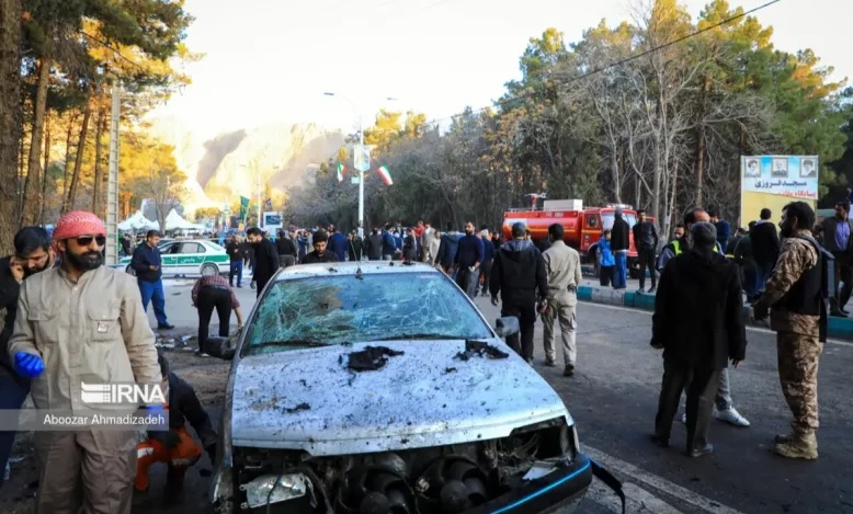 Инфиҷори бисёр маҳиб дар наздикии Гулзори шуҳадои Кирмон (Эрон) дар солгарди шаҳид Қосим Сулаймонӣ дар миёни анбӯҳи мардум