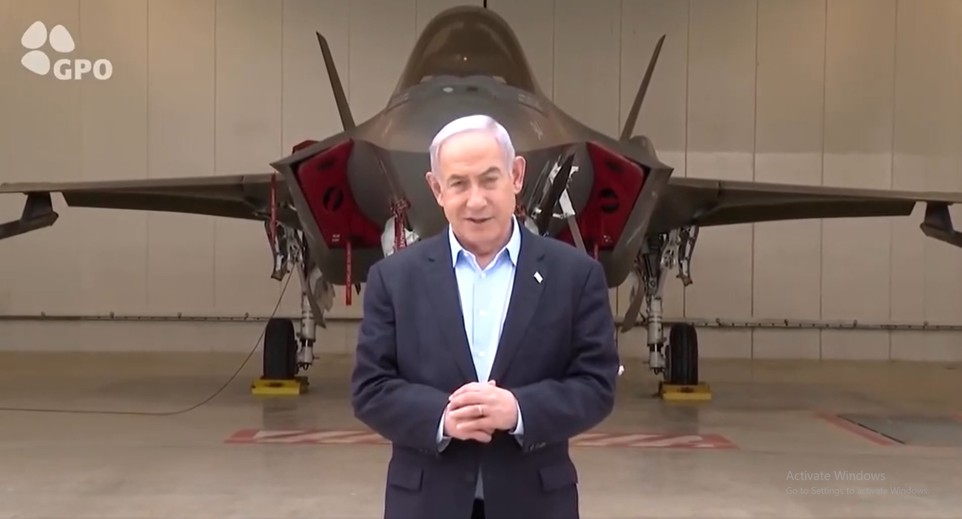 Бенёмин Натонёҳу дар январи 2024 дар пойгоҳи ҳавоии Навотим зимни ҳузур муқобили як ҷангандаи F-35 гуфта буд: