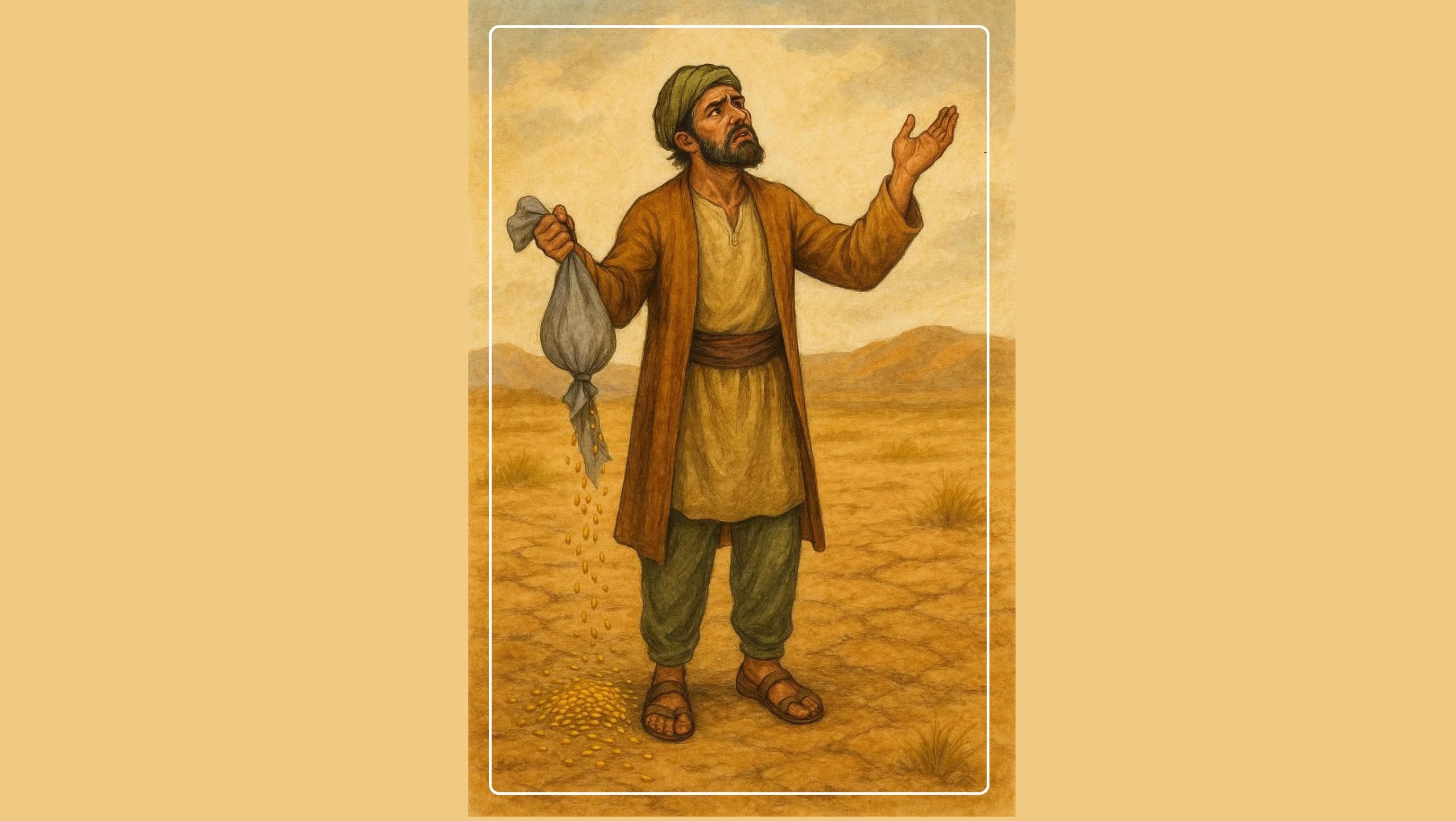 Айёми хушксолӣ ва қаҳтӣ буд, кишоварзе пеши осиёбон рафту гуфт: Ба ҳаққи Худо, бачаҳоям аз гуруснагӣ мемиранд, аз ту мехоҳам миқдоре гандум ба ман қарз бидеҳ, ман баъдан ба ту бармегардонам.